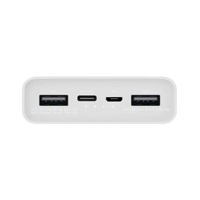 - Ports: Two USB-A output ports, one Type-C output port, and both Type-C and Micro-USB input ports.
