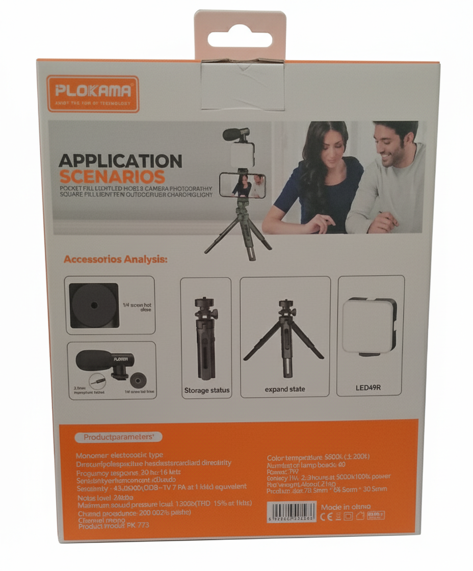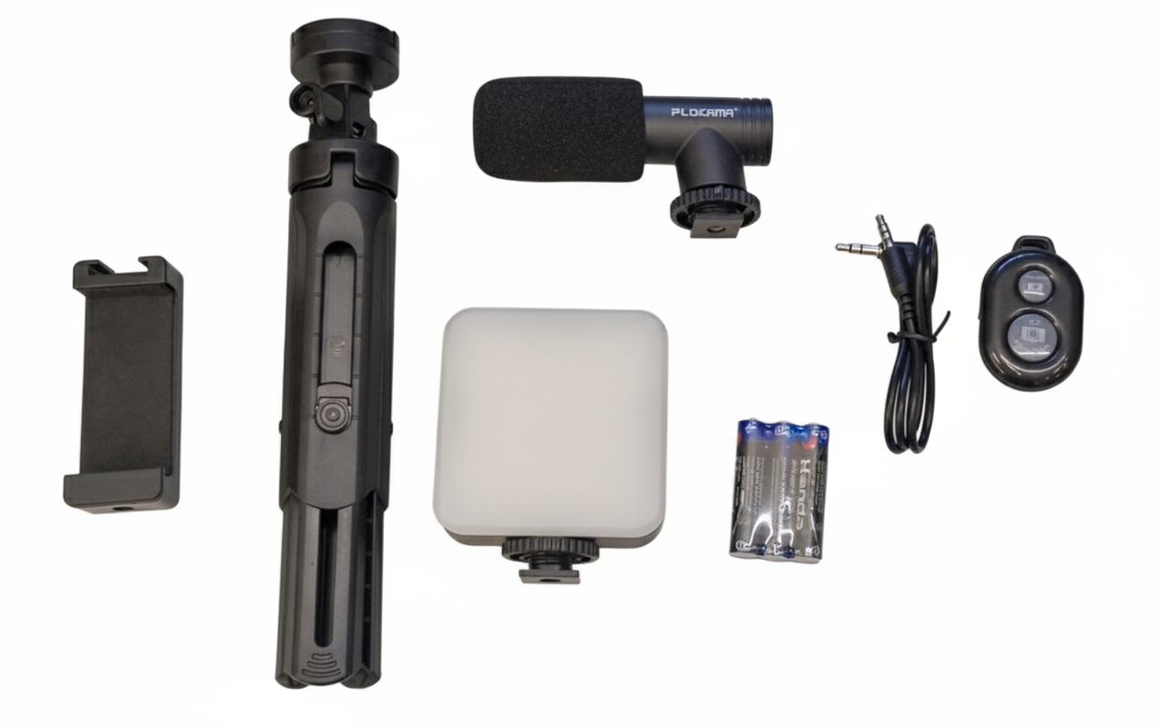 The Plokama PK-773 Video Making Tripod Kit with microphone offers a complete solution for enhancing your video production endeavors. This versatile kit includes a high-quality microphone integrated into a sturdy tripod setup, compatible with a wide range of smartphones and cameras. With its adjustable features and easy setup, achieving professional-quality results is effortless. Its portable design ensures convenience during transportation, making it an ideal choice for content creators of all levels. Whether you’re filming vlogs, interviews, tutorials, or other content, this kit provides everything you need for polished productions.
